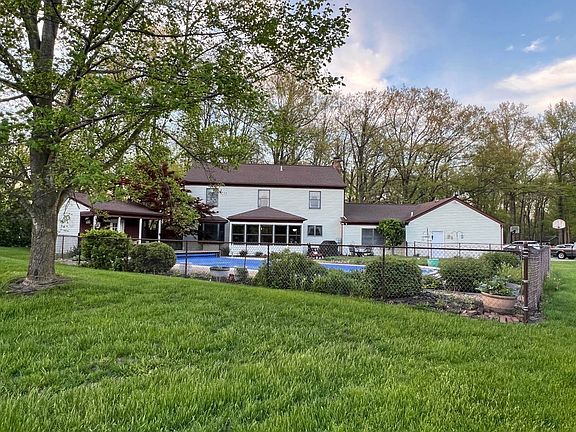 Welcome to your dream home! This stunning 2-story residence features 4 spacious bedrooms, a main floor den (which easily could be used as a 5th bedroom), 2 full bathrooms and 2 convenient half baths. Step outside to your private oasis featuring an inviting 18’x40’ in-ground, concrete pool with a 9-foot deep end and a 4 1/2-foot shallow end. The pool has an easy-to-use electric cover and all pool equipment stays with the home. It is professionally serviced, opened and closed each year. Located in a tranquil rural subdivision, this home offers the perfect blend of privacy and serenity. Inside, you’ll find plenty of space. The main floor also includes Dining, Living and Family rooms as well as the Kitchen and Breakfast nook. PLUS! ...a 16X14 three-season room (NOT included in the sqft) that looks out to that gorgeous yard and pool. Upstairs are the 4 bedrooms, all with pretty views! The large Main bedroom is 17 x14 and has a full bath. The 2nd full bath on the upper level has double sinks. This home is equipped with a water softener, two water heaters and an energy-efficient geothermal heating system, ensuring comfort and cost savings year-round. Also, enjoy peace of mind with the house generator. Outside the gorgeous flowers, cherry tree and two apple trees add natural beauty and fresh fruit to your surroundings. Overall, the landscaping is lovely! All kitchen appliances, washer, dryer, refrigerator in the garage and the freezer in the basement stay with the home. Propane tank line only runs to the pool shed/heater. Natural gas is available but this home is all electric. Don’t miss this exceptional opportunity to own a beautiful home that combines modern amenities with peaceful surroundings. Schedule your viewing today!