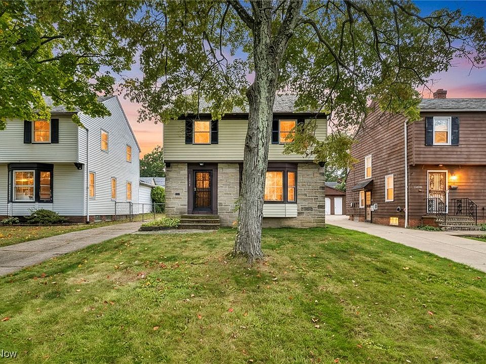Welcome to this beautifully updated 4-bedroom, 3-bath Colonial in Cleveland bordering the desirable Shaker Heights and all it's amenities. This home has been thoughtfully renovated, featuring a brand-new kitchen with stunning granite countertops and all-new stainless steel appliances. The main and lower level boasts new vinyl flooring, while the bedrooms are fitted with plush new carpet. The master or in-law suite is conveniently located on the first floor with an updated full bath and a walkout to the back with wheelchair access. The home also includes a partially finished basement with a half bath and washer/dryer. New windows throughout, fresh paint, and new light fixtures and finishes add to the modern appeal, while built-in original features maintain its classic charm. With bathrooms on every level, a newly sided two-car garage, and a fenced backyard, this home is ready to move in and awaits its new owner. The property is located in a vibrant, community-oriented neighborhood with easy access to local shops, restaurants, stores, banks and just a short drive to I-480. This area offers excellent convenience, while still maintaining the charm and character that make it a sought-after place to call home.