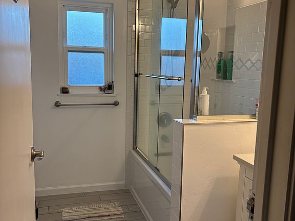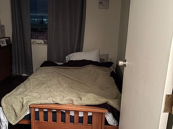 Available is a well-sized 12' x 11'6" private bedroom with exclusive use of a nearby bathroom in a thoughtfully upgraded East Bay bungalow. The home sits on a corner lot in the hills, offering serene views across the SF Bay and the San Mateo Bridge in the distance.
