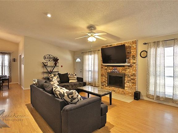 Located minutes from Dyess AFB! Great starter home featuring 3 beds, 2 baths with a split floor plan. Large living area with wood burning fireplace, and laminate flooring. Living is open to dining, with large windows, allowing lots of natural light. Separate utility room with access to the garage. Two car garage and storage building for all your tools! Large fenced yard, with covered patio! Fridge, washer and dryer stay! Don't miss this one!