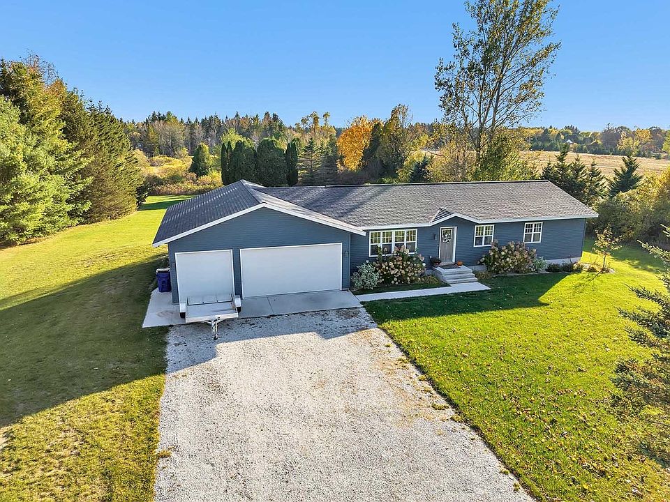 Completely remodeled ranch home located at the end of a quiet cul-de-sac bordering green space. Sun flooded living room. Applianced kitchen w/plenty of cabinet space & LVP flooring, tiled backsplash, snack counter, SS appliances & adjoining dining area w/doors to relaxing deck. 1st floor laundry w/folding counter, storage cabinets & ceramic tile floor. Main level master w/walk-in closet & private full bath w/dual sinks & step-in tile shower. Full lower level w/finished family room w/wood plank accent wall, exercise room w/concrete floor, bonus room or office & a large utility room. Updates include: Completely remodeled in 2018 + new windows, siding, 200 amp service, water softener & well pump. 3 car attached heated garage. 1.09 acre landscaped setting. Close to Lake & Point Beach Park