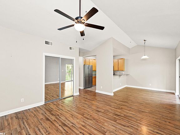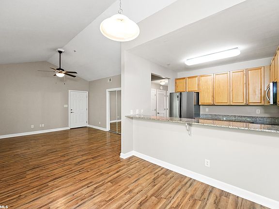Welcome to Dolphin Villas, a complex nestled in the heart of Gulf Shores! Your search for the perfect living space ends here, with this unit offering a harmonious blend of comfort and convenience. This residence boasts an air of privacy that's hard to come by. Your personal balcony overlooks a serene expanse of woods, providing a peaceful retreat where you can unwind and reconnect with nature.Step inside and be greeted by the airy charm of vaulted ceilings in the living room. Natural light cascades through the windows, bathing the interior in a welcoming glow. The result is a space that feels irresistibly warm and inviting, making you feel right at home from the moment you walk through the door.Prepare meals in the kitchen that offers stainless appliances and granite countertops. This kitchen is seamlessly connected to the dining area and living room, making it a breeze to entertain guests while preparing your favorite dishes. Whether you're hosting a dinner party or simply enjoying a quiet meal, this open layout ensures that you're never far from the heart of the action. There is beautiful laminate flooring throughout the unit, while tasteful tile accents the bathrooms, adding a touch of luxury and practicality. With two generously sized suites, each boasting its own private bathroom, you'll experience a level of comfort that truly stands out. The potential of turning this gem into an Airbnb or short-term rental is certainly worth exploring, given its unique appeal and desirability. The icing on the cake? The complex is just a mere 3-minute drive away and close proximity to shopping centers, places of worship, Gulf Shores City Schools, and an array of other local amenities. The Dolphin Villas community doesn't just offer a great location – it also provides a comprehensive array of benefits. HOA fee covers internet, cable, trash, pest control, exterior management, landscaping, and pool. This means you can relax knowing the essentials are taken care of!