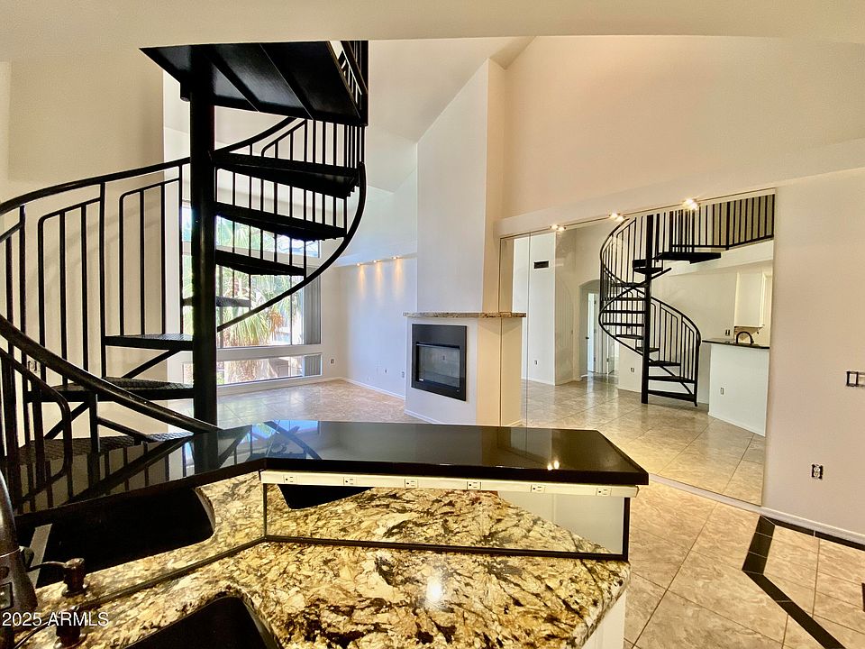 Beautiful 2 Bedroom + LOFT is available 5/26/23 **This 2 Bedroom has the spiral staircase with loft**Unit has ALL tile floors, vaulted ceilings, granite countertops, custom kitchen design, side by side refrigerator, stove with built in microwave, ceiling fans with light fixtures~ This unit definitely has the WOW factor~