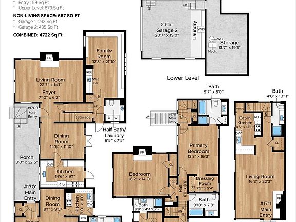 One of a kind residence with two income units for additional income or family compound. Each unit has sweeping views. Main home (1703 Funston) is a 2,458 sq ft, 3 bedroom 3 1/2 bath residence with hardwood floors throughout which were just refinished. Two of the bedrooms are en-suite while the third bedroom has a gas log set fireplace. The dining room has French doors to a patio for easy entertaining. The living room has a wood burning fireplace and windows on two sides to capture the views. There is a family room with wet bar which is ideal for a cozy gathering or office. This residence also has air conditioning and a mini-split system. The kitchen was remodeled in 2019 and features custom shaker style cabinets, a Blue Star Commercial gas range, stainless vent hood and GE Cafe Refrigerator. There is a Bay Alarm system installed which is currently inactive. 1701 Funston is a 838 sq. ft. one bedroom unit with dining room and a L/R with a direct vent gas fireplace and views over the city. There is a small private patio off the kitchen. 1711 Funston is a 732 sq. ft. studio with a gas fireplace in the L/R and sweeping views. Kitchen has area for a small table and a counter with stools overlooking the L/R which has a gas fireplace. Private patio. *Rents are $2,975 & $2,500 / mo.