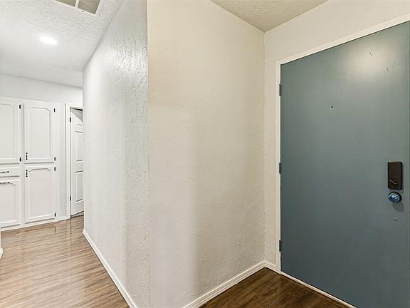**New Price!**Don't miss out on this great single family home located on a large corner lot in the popular East Hills addition. This 3 bedroom 2 bathroom home has been updated with fresh paint, updated kitchen and master bath, and plantation shutters. The large open living room is spacious with a brick wood burning fireplace. The home has wood vinyl flooring throughout with the exception of the bedrooms which have new carpeting. The kitchen has been updated with new cabinets, granite counter tops, a porcelain farm sink, & stainless steel appliances. The primary bedroom has plenty of room for a king sized bed. A barn door leads you into the updated primary bathroom with an oversized walk-in closet, granite counter tops, and a fresh walk-in shower. The back yard consists of a covered patio, plenty of yard space, & an in-ground storm shelter. An added bonus with this home is a 9'x9' room off of the garage that is cooled by a small unit (not included in square footage). This space would be a perfect office or hobby space. Washer, dryer, and refrigerator will stay!