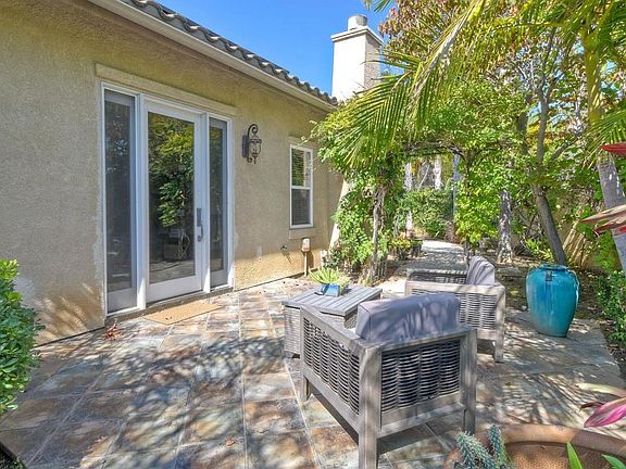 Beautiful neighborhood with a country feel. Elegant mediterranean styled home with a finished stucco wall surrounding the home for privacy. Tropical landscaping and spacious yard. Open chef's kitchen with center island and natral light. High ceilings open floor plan. Slate porcelain flooring throughout. Huge primary suite with walk in closet fit for a king and queen; brand new carpeting.Separate shower and huge tub with dual vanities & Separate make up station. The other 2 large bedrooms are separated by a jack and jill bathroom. Coastal breezes. No mello Roos and low HOA Dues $600 a year only. freeway access near by. Unique curb appeal with mature landscaping and fencing. 3 car garage woth Room for RV (if behind a fence) and multiple vehicles on the double wide concrete driveway. Solar for saving on energy!