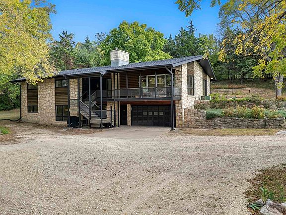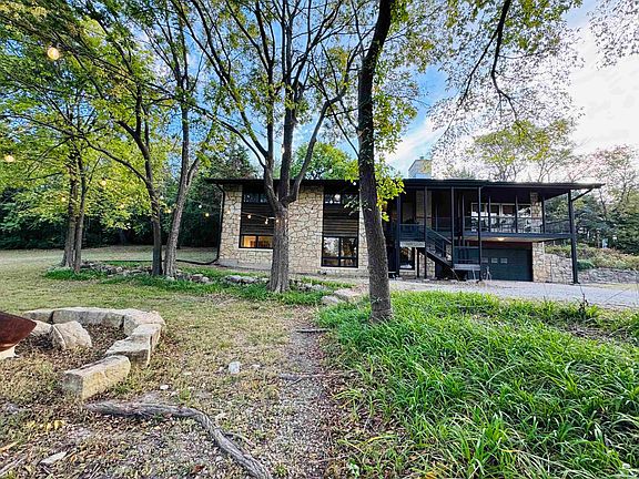 One-of-a-Kind Property in MHK - Tucked away on a serene, wooded 2.7-acre lot within walking distance of Amanda Arnold School, this Mid-Century Modern home is a rare blend of architectural character, modern comfort, and functional outdoor living. With 5 bedrooms, 3 bathrooms, and a finished walkout basement, this property offers the perfect balance of style, space, and privacy in the heart of MHK. Step inside and be greeted by warm natural light, clean lines, and an inviting fireplace that anchors the spacious main living area. The open-concept layout flows seamlessly into the dining area and kitchen, perfect for entertaining or quiet evenings at home. Let the homesteader dreamer in you enjoy the outdoor space for a garden, honey bees, chickens, and more. Another highlight of the property is the impressive 41x24 shop, featuring a dedicated woodworking area and a heated/cooled office space with a golf simulator—perfect for hobbyists, remote work, or a small business setup.
