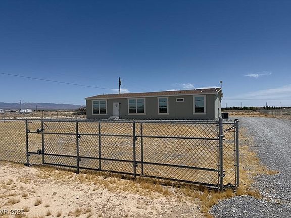 Nice 3 bedroom 2 bath manufactured home located in the semi-rural town of Pahrump, close to the California border. This home is newer and has Luxury Vinyl Plank flooring throughout, with a very nice kitchen and primary bathroom. The kitchen features an island, granite countertops, and stainless steel appliances. The primary bedroom has a spacious closet and there is also a rear covered patio. Show today! All figures and measurements are only approximate. Buyer is to verify schools, measurements and utilities.