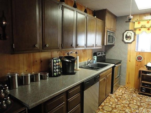 True mountain getaway! Start the memories in you new cabin in the pines. Cherished week end home for many years. Interior is all tongue and groove knotty pine. Updated kitchen is open to spacious great room complete with wood stove to stay warm by on cold winter nights. Room for everyone this charming A FRAME has 2 bedrooms upstairs plus third floor mini loft . Plenty of parking for all the cars and RV's and room for a garage in the future. Large wrap around deck to enjoy the smell of the pines. Close to Mt High Ski resort and a short walk to the Village of Wrightwood!