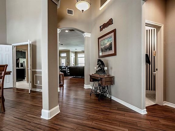 Multiple OFFERS received, Monday March 16, 2020 at 3pm is deadline to submit. Beautiful open flowing floor plan with soaring ceilings, crown mouldings, plantation shutters, wood floors flow through the home, Open living area has radiating gas fireplace, can heat most of entertaining area, spacious gourmet kitchen with granite countertops and an abundance of cabinets, breakfast bar, island, updated stainless steel Fridgidaire appliances, gas cooktop, Butlers pantry, split bedroom design, private master suite with sitting area that overlooks private backyard with pool and spa, master bath with updated his and her vanities, granite, updated separate shower, jetted tub, linen closet, arbor covered patio,Private lot