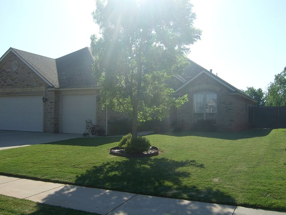 Single family home built in 2005. One owner, well maintained property both interior and exterior. Three bedrooms, 2 full bathrooms and study. Three car garage. Hardwood floors and tile throughout the home, no carpet. Natural gas stove, heat, and water heater. Built in storm shelter in garage floor. Backyard patio and privacy fence. Quiet neighborhood. Close access to I-240, I-35 and various retail stores. Non smoking home. Stove, microwave, diswasher included with home along with an espresso colored pub style kitchen table if wanted by renter. Gladiator brand garage organization system also included.