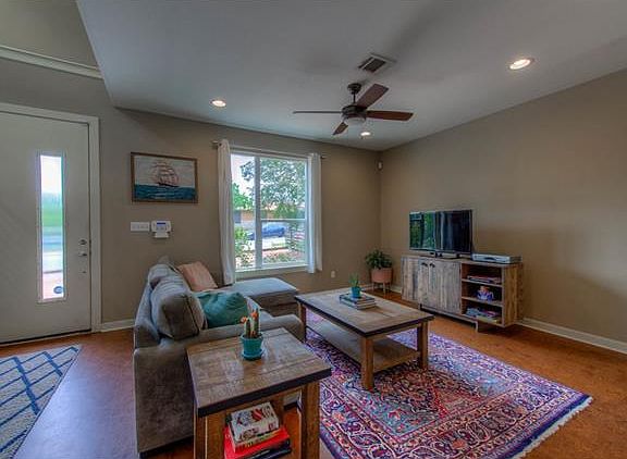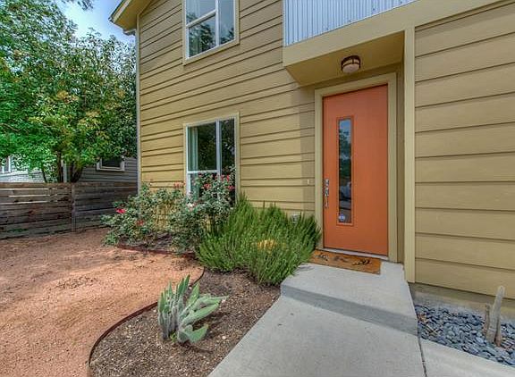 3 Bedrooms. 2.5 Bath. 1,840 SF. Built in 2014 by Thurman Homes. Modern stylings & rich warm tones come together to make this home as friendly & unique as the city it resides. Open floor plan & numerous windows allow the home to have plenty of natural light. High, vaulted ceilings give the home a modern feel which blends well w/ the organic cork flooring & natural stone tile. Teak inlayed backsplash gives a regal touch to the kitchen. Mosaic tile adds luxe to the couples' shower in the master. Large, flat backyard. Open House: Sat 6/3 12-2pm.