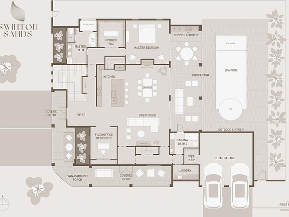 Outside, the resort-style backyard offers a sparkling saltwater, heated 15x30 pool with a 6' sunshelf and a 6x6 jacuzzi with custom lighting and automation. A stunning summer kitchen with a Coyote Grill, porcelain flooring in the loggia, and throughout the pool decking. A private stone outdoor shower with the most magnificent landscape lighting highlights both the front and back yards. The final details include an LED fireplace with heat, creating the most amazing indoor-outdoor living experience you could ever dream of. Experience the height of luxury coastal living with Swinton Sands, where every detail has been thoughtfully designed to offer a lifestyle of exceptional elegance, comfort, and sophistication.