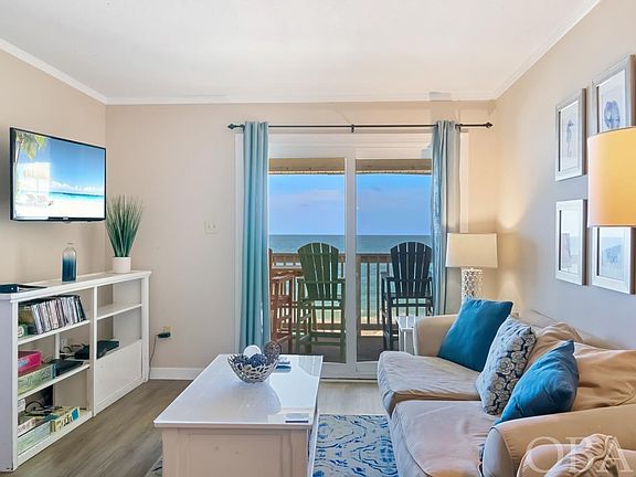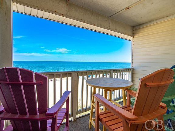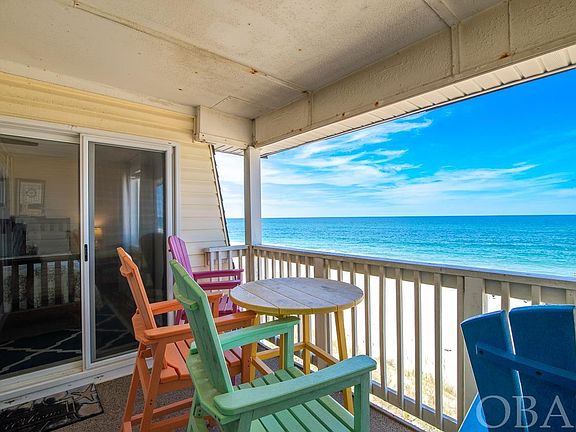 Lovely top-floor fully furnished oceanfront condo with breathtaking ocean views and beautiful updates! Updates include luxury vinyl tile (LVT) flooring throughout (2017) and granite kitchen countertops (2021). The heat pump was replaced in 2018 and the stackable washer/dryer in 2017. Some furniture has been replaced and there is a new vanity top in the guest bathroom. The oceanfront ensuite bedroom has great ocean views! This bedroom features a queen bed and has slider access to the oceanfront covered deck. The second bedroom has two twin bunk beds and direct access to a full bathroom; this bathroom is shared with the living area. The living area, with excellent ocean views, leads to the covered oceanfront deck. Both bedrooms and the living room have flat-screen HDTVs with Blue Ray/DVD players. The condo has a dishwasher. Currently rented through VRBO listing 4442200, this unit brought in over $53k in rental income in 2021 and over $54k for 2022. The unit has a ground level storage room. The Sands Condo community offers great amenities such as a pool, direct beach access, a cargo lift for luggage, groceries, etc., outside showers, community laundry room, and a grilling area. The condo is centrally located, near Mile Post 7, and is a short distance from popular restaurants, The Dare Center for shopping, the famous Wright Brother's National Memorial, KDH Movie Theater, and the Avalon Pier. A Target store is under construction nearby!