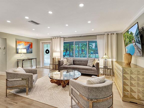 Beautifully Renovated 3 bed 2 bath pool home in East Wilton Manors w/ semi circle driveway and cozy screened front porch. This totally renovated home has a great layout with spacious living room, open kitchen, and dedicated dining area that leads to a large screened in Florida room overlooking the private tropical back yard and pool. Consistent tile flooring throughout the living spaces, recessed lighting, high end finishes (waterworks fixtures in baths), and frosted glass interior doors. Converted garage with AC would make a great 4th bedroom / guest space, den, home gym, or office. Impact windows and doors. Roof replaced in 2022, HVAC 2019, Diamond Brite and pool pump 2025. Located in a quiet neighborhood close to Wilton Drive, Fort Lauderdale, the beach, restaurants & shopping.