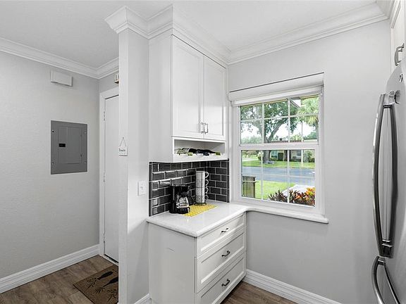 Welcome to your remodeled 2-bedroom, 1.5-bath villa in the sought-after 55+ community of Pinehurst Village, ideally located just 1.5 miles from vibrant downtown Dunedin and 4 miles from the sugar sands of Honeymoon Island State Park. This residence has been stylishly updated with crown molding, 5" baseboards, and luxury vinyl plank flooring throughout. The kitchen dazzles with quartz countertops, stainless steel appliances, white cabinetry, a subway tile backsplash, and a custom pantry, while both bathrooms feature custom vanities, including a spa-inspired walk-in shower with dual shower heads in the main bath. Plantation shutters and remote-controlled shades dress every window, and the split-bedroom plan enhances privacy. A convenient washer and dryer are located inside the unit, and the home’s position along the south perimeter wall means no rear neighbors, offering peaceful surroundings and extra privacy rarely found in condo living. Recent upgrades include HVAC (2021), updated electrical panel (2020), and a roof replaced by the association in 2023. An assigned covered carport and ample guest parking add to the ease of living. The clubhouse, heated pool, shuffleboard courts, and picnic area are just steps away. Pinehurst Village is celebrated for its lush grounds, active social calendar, and wide-ranging amenities, while monthly maintenance covers nearly everything including water, sewer, trash, exterior maintenance, lawn care, cable, internet, and escrow reserves, making life feel virtually maintenance free. With nearby festivals, restaurants, breweries, boutiques, golf courses, the Pinellas Trail, and TD Ballpark for Blue Jays spring training, this villa invites you to embrace the very best of the Florida lifestyle, whether year-round or seasonal. Reach out to book a showing!
