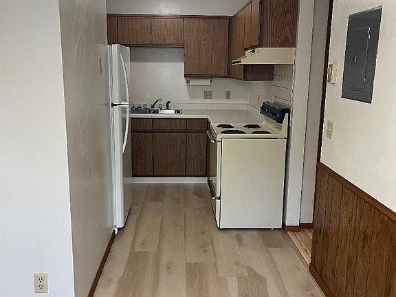 Nice 2-bedroom apartment that has new flooring in the living room, kitchen, and dining room. A/C, on site laundry, garage w/opener, off street parking. Good closet space, and a tub shower combination. Very clean and quiet building. Must pass background check. Renter pays electric and cable. Water, & Trash removal provided No smoking, pets, or section 8.