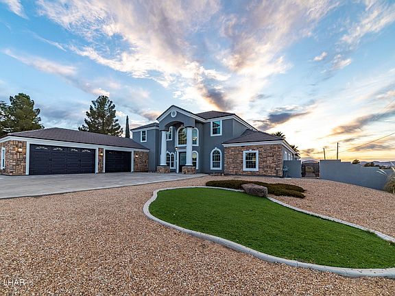 Welcome to 1701 Quail Ridge Circle in Kingman, AZ!With over 4,500 SF of livable SF this 2-story home offers all you'll need to fulfill your wildest dreams! The views are killer & endless! In ground, gunite heated pool & hot tub. A short walk down the steps delivers you to the 5-car detached garage (40' x 60') that is dreamy with its car lift & golf simulator that is included, heck even the attached 3-car garage(28' x 45'). covered & partially enclosed patio includes a full outdoor kitchen complete with a 5-burner gas grill, recessed refrigerator, griddle, multiple TVs & a ceiling fan...Recent improvements include over $80k in painting of the main home & detached garage, new rain gutters installed, & $25k in flooring! Now lets get back to the house, you enter the large 4' wide, 8' tall front door to be greeted by the solid wood spiraling staircase. Downstairs you have the primary suite & a guest bedroom/bathroom along w/ 2 family rooms, formal dining room, huge laundry room & central kitchen w/ assorted entry points. Upstairs is a loft w/ views in 2 directions & 2 guest bedrooms both of which have a walk in closet & one has its own balcony that overlooks the incredible backyard.