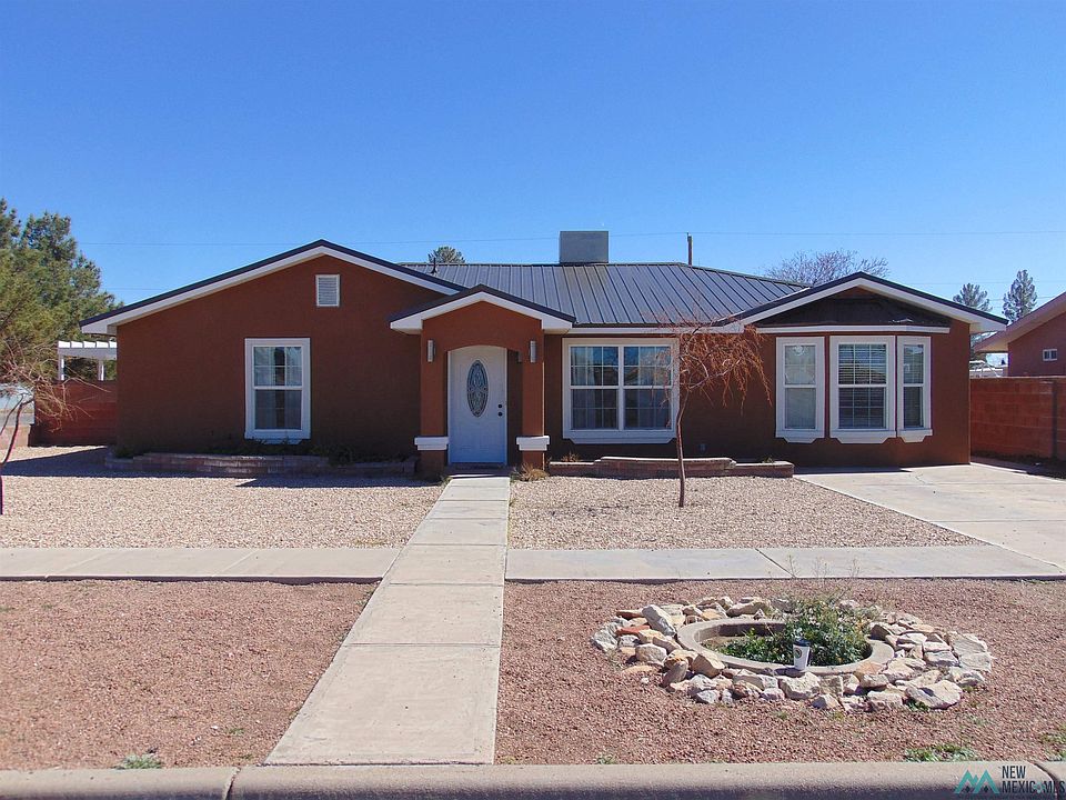 In Town Stunner, Light, Bright and Open. Large Fully Remodeled Home. Built in 1999 with 2477 Sq Ft of living space & Corner Lot. Features Split Floor Plan, 4 Bedrooms, 3 Full Bathrooms, Formal Living room, Family Room with French Doors to back yard, Formal Dining room, Eat in Kitchen, Master Bedroom features are Double Closet, Master bath has large walk in Shower with Double Sinks and also has a private walk out to patio. One other Bedroom also has private full bathroom great for guest or live in family member .  Beautiful Plumbing Fixtures, Lighting and Flooring throughout. Dual Zoned Heating Cooling and Hot Water, Exterior Stucco, Pitched Shingle Roof, Landscaping, Block wall fence and large Storage Shed. Home is located within all the amenities Deming NM has to offer. Don't miss the opportunity to see this lovely Home and make it your own! Holiday Entertaining dream come true or any type of family gathering would be a breeze in this Home. Beautiful New Metal Roof as of Feb 2024