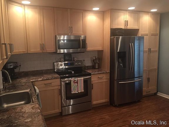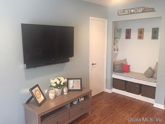 Uniquely reimagined townhome features great decor and exudes pride of ownership. Open gourmet kitchen is outfitted with ample cabinetry, including a pantry cabinet with rollout trays. Designer cabinets have softclose doors and drawers and tile backsplash ties everything together. Living room features built-in bench seat with beadboard trim. Screened porch overlooks wooded area and has woodgrain look tile and a one-of-kind bar. Included with reasonable HOA dues are access to community pool, lawn maintenance, structure insurance and common area maintenance. Excellent SE Ocala location surrounded by nice areas and convenient to shopping, dining, hospitals and downtown.