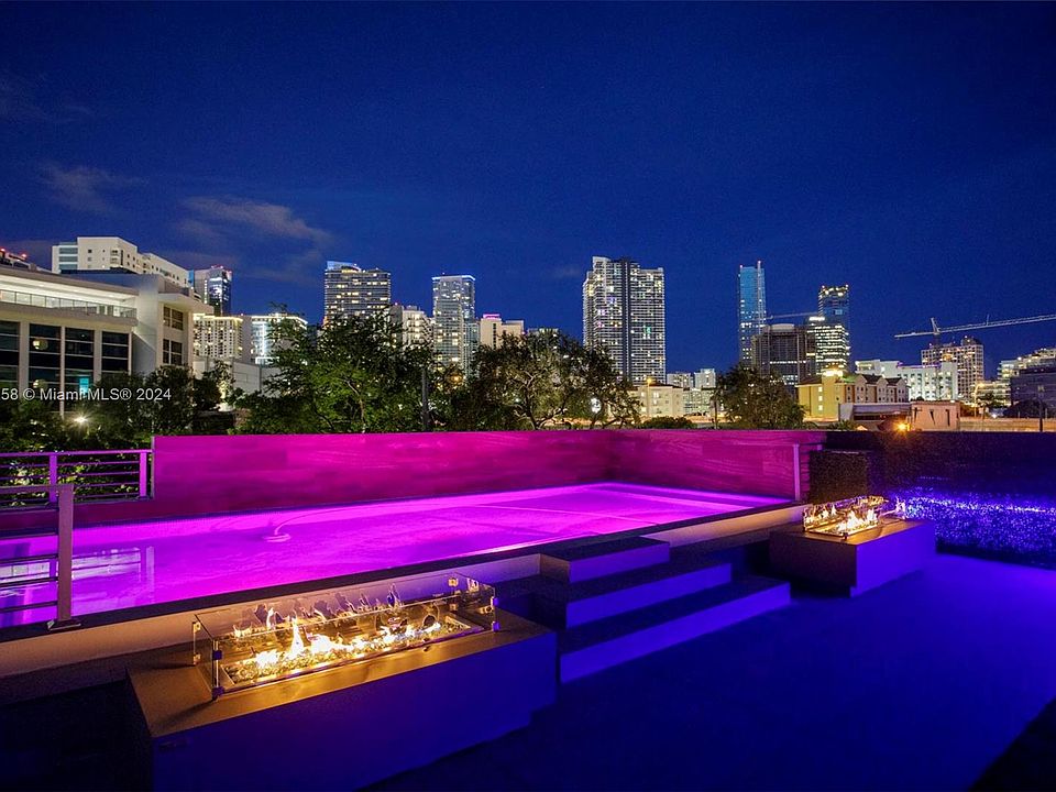 Every detail has been thoughtfully considered in this multi-level home, artfully merging contemporary design with tropical elegance. The first-floor offers en-suite bedrooms, featuring custom closets, while the main level boasts expansive living areas that flow effortlessly into a sleek kitchen with clean lines and abundant storage. The crown jewel is the expansive rooftop deck, equipped with a heated saltwater pool, gas fire features, outdoor shower, summer kitchen, and a hurricane-rated pergola, all set against the stunning backdrop of the city skyline. Additional highlights include a custom home theater, full-home gas generator, Control4 home automation, advanced outdoor security, mosquito control system, and a reverse osmosis water system, ensuring a lifestyle of unparalleled comfort.