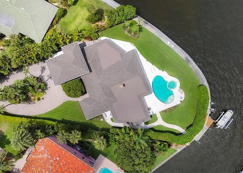 One or more photo(s) has been virtually staged. Welcome to 1701 Sandalwood Drive, a stunning waterfront oasis in sought-after Southpointe Shores, West of the Trail, right on Sarasota Bay. This stunning bayfront lot stretches over half an acre with more than 150 feet of water frontage. Almost limitless possibilities for building your dream home on the bay in a sought-after and convenient location. Enjoy sunsets and quick access by boat to the Gulf via newly opened Midnight Pass between Siesta Key and Casey Key. A rarely available opportunity to construct a new home and enjoy all the Sarasota waterfront lifestyle has to offer. The home has been remediated and is beautiful. Inside, the open and functional floor plan has large tile set diagonally throughout the main living spaces. The living room, featuring a charming brick fireplace, seamlessly blends into the kitchen and dining areas. The kitchen is a chef's dream, complete with wood cabinetry, granite countertops and a top-tier stainless steel appliance package. The family room, with its walls of large windows, provides endless water and sunset views, creating a serene and picturesque living environment. The primary suite is a tranquil escape, offering an updated en-suite bath and an enclosed sunroom. Additionally, there are three guest bedrooms and 2.5 guest baths for added convenience. The second-floor bonus room is a blank slate and could serve as an office, workout space or any number of alternatives. The enclosed patio offers breathtaking views of the sparkling pool, expansive stone pool deck, spacious yard and the bay beyond.