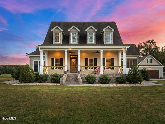 Welcome to this stunning country home located down a private drive in Ayden, NC. The property spans 12.7 +/- acres, (with new survey by the end of October) providing you with breathtaking views and plenty of space to enjoy the natural surroundings. The custom-built house offers 3,528 +/- square feet of living space and features three bedrooms, each complete with a full bathroom. There is also a convenient half bath located in the foyer. The cabinets throughout the home are custom-built with slow-close doors, adding a touch of quality to the design. The kitchen is equipped with granite countertops and a stylish tile backsplash. All appliances are GE. You will find beautiful white oak floors throughout the main areas of the home, while the upstairs bedrooms are carpeted for added comfort. The primary bathroom includes a custom-built walk-in tile shower and tile floors, as well as a double vanity. Upstairs has two finished bonus rooms with heat and air, which offer ample space for your needs. In the living room, you'll enjoy a stone, see-through gas log fireplace, creating a cozy atmosphere. Step outside to discover a gorgeous underground pool with a hot tub, along with an outdoor bathroom for convenience. The property features both an attached garage and a detached garage, which includes storage space above. Once you step outside, you will enjoy the nature that surrounds this place, with turkeys and deer roaming through the yard. This home provides ample space for you to get out and enjoy.