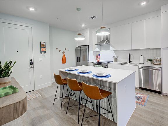 Check out this stunning modern 1 bed/1ba condo in the new Mueller District. This unit is equipped with a modern kitchen, eating area, and open concept living room. The bedroom is large and boasts a desk as well as king bed and walk in closet. Double vanities as well as large shower tub complete the fun and Austin themed bathroom. This condo comes with access to a fitness center, recreational room, several lounges. pool, hot tub, and rooftop patio. A short walk to many restaurants, an alamo draft house. and Muellers large pond and park, this condo is the perfect spot for those who are looking to be close to many wonderful Austin amenities. Full Furnished, Utilities Included, Google Fiber equipped, pets accepted.
