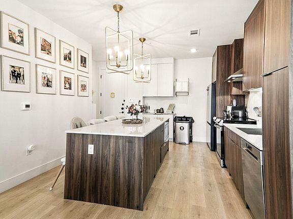 Discover elevated living in this beautifully updated TOP-floor 2-bedroom, 2-bath condo in the heart of Austin’s highly desirable Mueller community. This amazing condo is located directly across from Mueller Park in the gorgeous Parkside Mueller Residences. Overlooking the serene courtyard and community pool, this home offers a rare combination of style, comfort, and thoughtful upgrades. Located just steps from Mueller’s iconic parks, H-E-B, Alamo Drafthouse, weekly farmers markets, walking trails, cafes, and more, this is a rare opportunity to own a beautifully appointed condo in one of Austin’s most desirable neighborhoods. The open-concept living space is filled with natural light and upgraded with curated design details including updated pendant lighting, under-cabinet lighting, and soft-close drawers with built-in illumination. The kitchen is both functional and beautiful, featuring custom cabinetry, a built-in KitchenAid mixer cabinet, and a full suite of included Samsung appliances. The water filtration system offers instant hot water, making your everyday routines effortless and efficient. This ADA-compliant unit comes with two reserved parking spaces conveniently located next to the elevator, including ONE SPOT EQUIPPED WITH EV CHARGING FOR ELECTRIC VEHICLES($20,000 value). Motorized blinds, Alexa-compatible dimmable lighting, and professionally installed wall mounts with hidden wiring for TVs in the living room and primary bedroom ensure a seamless, clutter-free look. Both bathrooms and the laundry room include custom cabinetry for added storage. Step out onto your private balcony to take in the calming view of the pool and courtyard—a rare sense of retreat in the middle of it all. Whether you're relocating, downsizing, or investing in your first Austin property, this home offers the best of city living with a peaceful, elevated twist. Schedule your showing today!