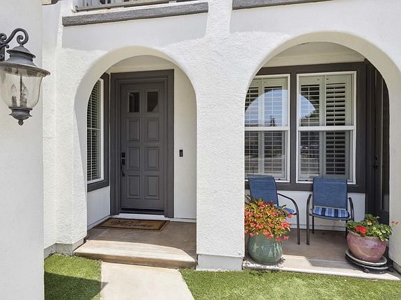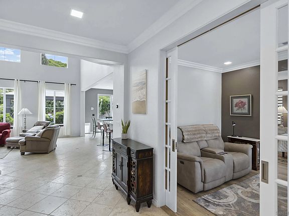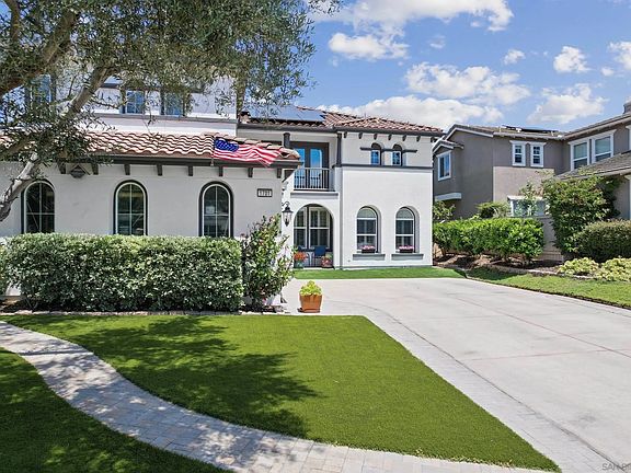 Discover a hidden gem in the gated enclave of Saverne, tucked into the scenic hills of San Elijo. This beautifully reimagined 5-bedroom, 3.5-bath home—including a first floor, newly added multi-generational suite—rests on a premium corner lot at the end of a quiet cul-de-sac, offering unmatched privacy and elevated charm. Inside, the open-concept layout blends luxury and function. The chef’s kitchen features granite countertops, a built-in coffee station, white cabinetry, an oversized island, three ovens, a 6-burner gas range,microwave, and refrigerator—all just steps away to your serene backyard and elegant gazebo. Living spaces are enriched by travertine and luxury vinyl plank flooring, integrated surround sound, high ceiling and natural light streaming through newer dual-pane windows (installed in 2020). Upstairs, the tranquil primary suite offers a sitting area and dual walk-in closets, while three additional bedrooms provide flexibility for family, guests, or office space. The main-level multi-gen suite includes its own private lounge and sliding doors—ideal for extended stays or in-law living. Step outside to your private resort-style retreat: a sparkling pool, spa, rock waterfall, and slide, enclosed by custom wrought-iron fencing. A 12' x 12' gazebo, new pavers, and multiple lounge areas complete the entertainer’s dream setting. Upgrades abound: an owned 28-panel solar system with dedicated pool solar, Pentair WIFI-enabled Screen Logic pool control, Quiet Cool whole-house fan, fresh exterior paint, low-maintenance turf and hardscaping, an epoxy-finished garage with overhead storage and 50 Amp/240V EV charger, plus an exterior storage shed for added convenience. Zoned for award-winning schools and moments from trails, parks, and San Elijo’s charming town center, this home offers the perfect balance of luxury, lifestyle, and location. A home where memories are made, laughter is shared, and every day feels like a vacation. All information deemed reliable but not guaranteed. Buyer and Buyer’s Agent to verify all details. Full list of upgrades available in the MLS.
