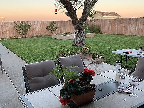 COMPLETELY UPDATED: Kitchen (including cabinets, floors, appliances) Master bathroom Guest bathroom Light fixtures Ceiling fans Custom window coverings Interior raised panel doors and door jambs Exterior doors, including rear 3 panel patio door Window sills All “popcorn” ceiling texture has been removed and retextured Recessed can lighting Crown molding throughout All walls have been retextured Front and back yards are landscaped Sprinkler system Raised bed vegetable garden (with sprinkler system) Exterior has been recently repainted New exterior light fixtures Garage has been completely restored with new ceiling, texture, paint and lights. Garage flooring has been textured with a speckled epoxy paint Previous owner replaced windows and laid a wood laminate floor in all areas not tiled. (no carpet throughout) STORM CELLAR
