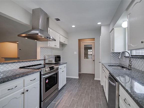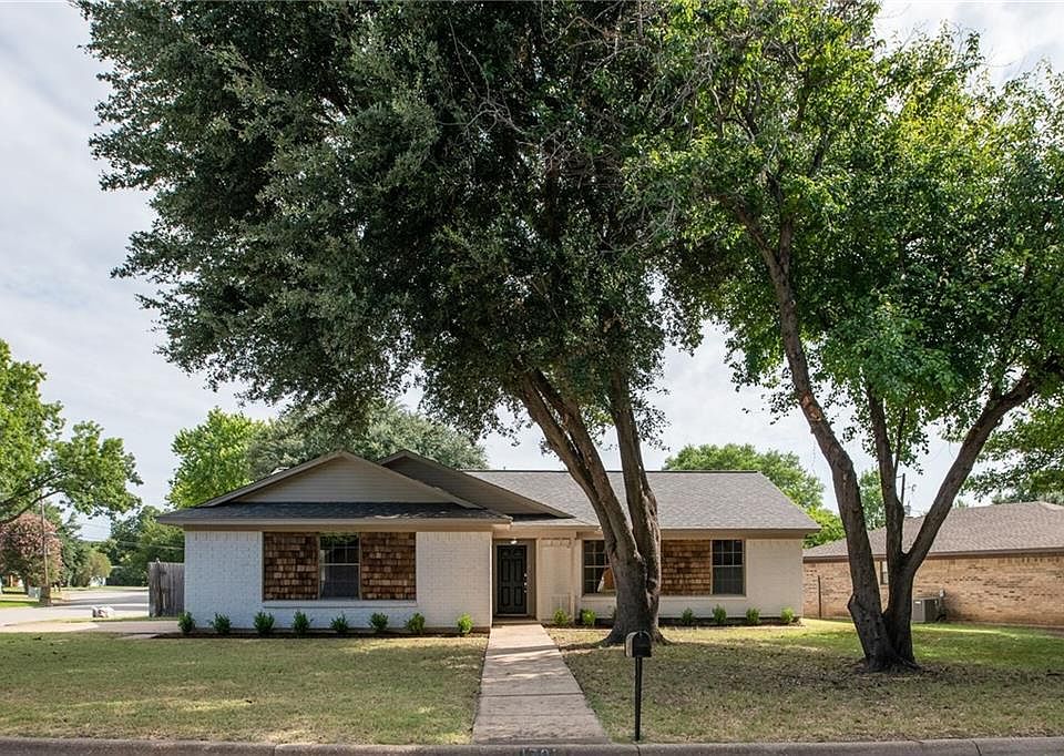 Nicely updated home on a corner lot with a diving pool to escape the Texas heat. Located close to I20 and 820 with quick access to Bryant Irvin and Hulen. Floor Plan has a large living room with a vaulted ceiling and wet bar. Updates completed July '19 include paint inside and out, all new flooring, granite countertops throughout, back splash, stainless appliances, tub and shower tile, all plumbing fixtures and light fixtures, door and cabinet hardware and much more. Master has his and her vanities. Wonderful outdoor space with a covered porch overlooking the pool and a storage building.