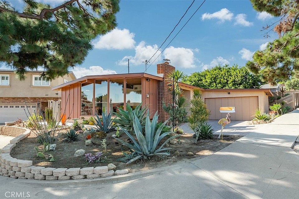 A classic Mid Century Modern home built in 1955 and perched on an elevated lot in desirable Miraleste Pines. Angular details, clean lines and vaulted wood beamed ceilings compliment the open floor plan and functional layout. As you enter, hardwood floors and natural light guide you throughout the interior. A large glass wall creates a seamless transition between the outdoor and indoor living spaces while overlooking meticulous desert landscaping. The main living and dining room collaborate for an inviting and balanced setting. A rustic brick fireplace adds a touch of nostalgia to the heart of the home. Well appointed with granite countertops and stainless steel appliances, the sizable kitchen has ample storage and an adjacent utility/laundry room. The primary bedroom is spacious and efficient, complete with an ensuite bathroom and walk-in closet. Two additional bedrooms are proportionate in size, providing alternative options. Entertain your friends and family in the private backyard, perfectly set with a built-in island bar, covered patio and beautiful Brazilian pepper trees. Additional upgrades include central heat & AC, new roof, updated windows, fresh paint and so much more. A premier setting at the base of Palos Verdes, just moments from shopping centers and easy freeway access.
