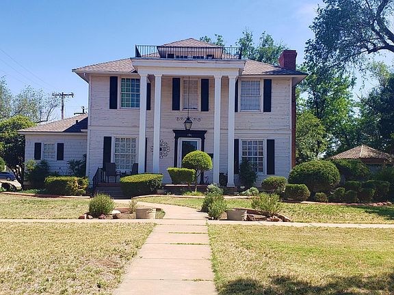 Popular Colonial home on the bricked 7th street of town. This home has 4 bedrooms 2 full bathrooms, 2 living areas, refinished hardwood flooring on main floor and lots of old world charm. Kitchen has granite counter tops, pretty exposed brick column, dishwasher, and gas stove. Dining room has built-in china hutch and french doors to the side patio. Isolated master bedroom with large closet and master bath on main floor. 3 bedrooms and 1 full bathroom are upstairs. Home has central heat and air, fireplace and cellar. Detached 2 car garage has an 1/1 apartment that could be renovated for a good source of extra income or mother-in-law suite. Pretty backyard has a gazebo with lots of mature trees and shade. House sits on a corner lot and has amazing curb appeal!