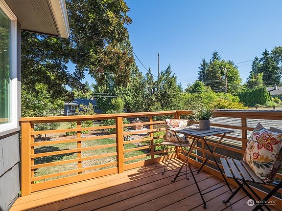 Sunlight fills this spacious move-in-ready 4 bed/1.75 bath home in Shoreline’s Ridgecrest area. The bright & inviting spaces include an open plan with large dining & living areas. The chefs kitchen works brilliantly with utility area to house the fridge & pantry storage. Enjoy coffee and meals on sunny back balcony. The daylight lower-level family room opens to tranquil back yard. A king-sized primary with en suite includes a large nook with so many options: office, closet, nursery, exercise. Recent updates include carpets, paint, heating/AC, windows, &roof. Easy-care yard with neighborly front patio & garden areas. On a quiet non-through street just blocks to school, parks, & shops, this bright & charming home is sure to steal your heart.