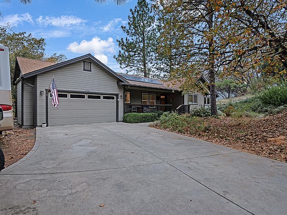 This lovely, single-story home is nestled among tall trees and is located in Alta Sierra, just minutes from Highway 49. Enjoy the expansive great room with high ceilings and plenty of windows to take in the serene views. Kitchen is light and bright with a central island for entertaining. House has central heat and air and a cozy gas parlor stove perfect for those chilly winter evenings. The large master suite, generous bedrooms, and an office with a half bath and laundry room complete the inside of this home. Outside, you can enjoy the scenic (freshly stained) back deck with retractable awning. This home also features solar to reduce utility costs. It's close to the golf course, recreation facilities and the clubhouse. Great place to live and/or work from home and close to schools.
