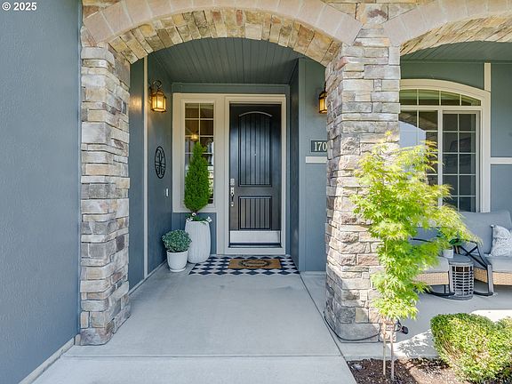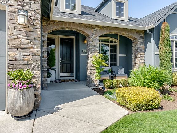 Built by New Tradition Homes in an upscale neighborhood, this thoughtfully designed 3 bedroom 2.5 bath home offers comfort, function, and style. Located in the sought-after Hockinson School District and close to shopping, parks, and trails. The great room floorplan features high ceilings, hardwood floors, upgraded trim, and a two-way gas fireplace that opens to the covered patio. The spacious kitchen includes a gas range with hood, double oven, oversized island with bar seating, quartz counters, pantry, and under-cabinet lighting. The primary suite is privately situated with a large walk-in closet featuring built-ins, jetted tub, tile shower, dual sinks, and direct access to a private hot tub with bamboo privacy screens. One-level living with a versatile loft perfect for an office. Fully landscaped yard with extended patio and side garden. Additional upgrades include wood-wrapped windows, wainscoting, custom blinds, tankless water heater, LVP flooring in primary bath, and included refrigerator.