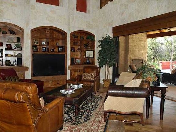 Unique hill country mini ranch nestled in the heart of Lakeway. You will find nothing like this sophisticated and sprawling Texas Ranch that brings the ultimate in casual elegance. Almost 3.8 acres of beautifully treed and landscaped bliss is adorned with a private main home and guest house that provides secluded, resort-style living. The water area features a 1,600 sq ft heated pool with beach-like entry, 6 high grotto/waterfall, 12-person spa, 100 waterslide and outdoor shower. The outdoor living area offers a fireplace and kitchen. The main home offers high-end finishes throughout bringing natural elements of mesquite, pine, pecan, hickory wood and stone together in mesmerizing harmony. The gourmet kitchen gracefully brings together granite counters, custom Knotty Alder cabinetry, custom center island and Thermador Professional Series appliances. Luxurious master sanctuary with spa-like bath provides a private space to retire to at the end of the day. An air-conditioned exercise room above the garage features rubber floors and surround system. A separate 1/1 guest home is the perfect retreat fully loaded with living room, dining room, kitchen, bedroom, bathroom and outdoor patio.