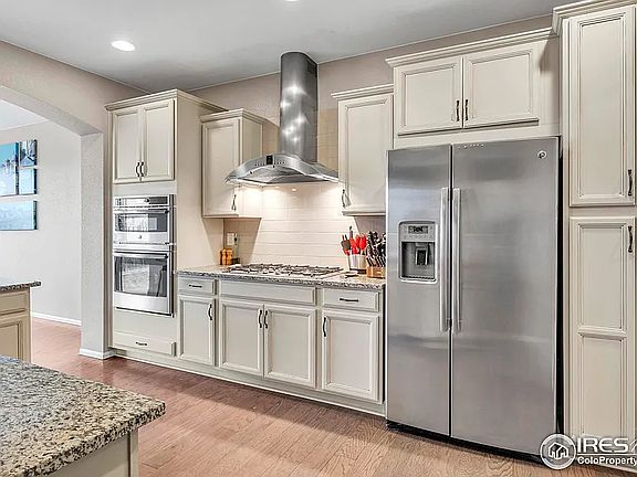 Chef's Kitchen Gas cooktop, large vent hood, stainless appliances, pantry, and plenty of cabinet space for storage.