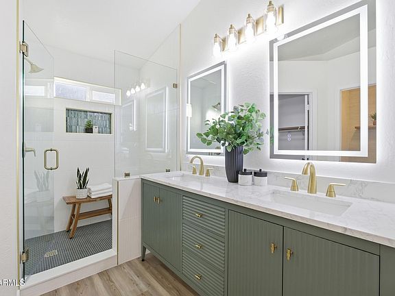 Tile backsplashWine fridgeWalk-in closetModern kitchenTiled walk-in showerOversized cul-de-sac lot