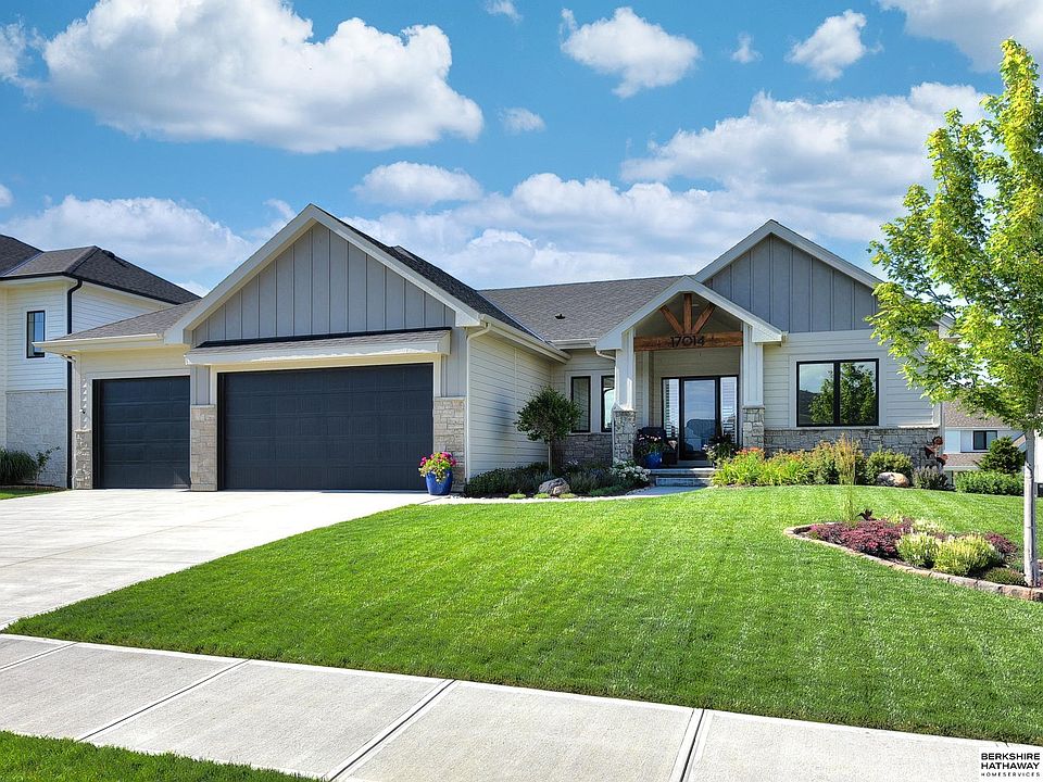 Incredible 5 bedroom ranch home with stunning pool. Situated on a south facing walk-out lot, this beautiful home will impress you from the moment you walk in as it features an open concept floor plan with modern finishes including quartz countertops, SS appliances, pantry & beautiful cabinetry throughout. The gorgeous kitchen & dinette area opens to the cozy yet spacious living room. Main floor features a primary bedroom with spa like bathroom & is separate from the other 2 main floor bedrooms. Drop zone & laundry room are also located on the main floor. The lower level boasts 2 beds, 3/4 bath, wet bar & spacious rec room perfect for entertaining. Fully fenced backyard featuring a beautiful salt water sports depth pool, covered deck and patio + professional pet turf w/ drainage system. Additional features include stunning views of Bennington Lake, beautiful landscape, sprinkler system & a 50 inch professional dog wash with hot/cold water. Close to schools & walking trails.