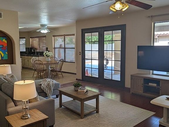 Spacious home located in the exclusive Lakewood area of Ahwatukee. This property is nestled near the base of South Mountain, offering convenient access to the 202 South loop, as well as exceptional dining and shopping options. The home itself features a 3 car garage, vaulted ceilings, an open floor plan, and two wood-burning fireplaces. The oversized Primary Suite includes a fireplace, wet bar, a large roman style soaking tub, walk-in shower, and a walk-in closet complete with laundry shoot. The owners have recently updated the bathrooms with neutral tile. The beautiful backyard pool has been recently updated with new Pebble Tec resurfacing and new cool deck. There is a large covered patio for relaxing that includes a gas grill for outdoor fun.