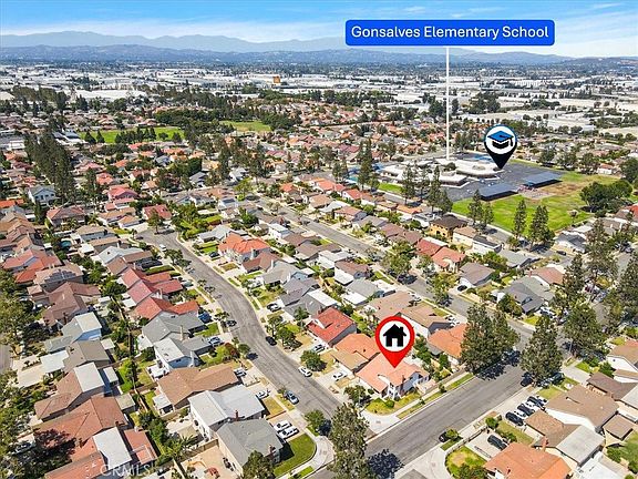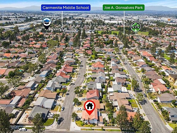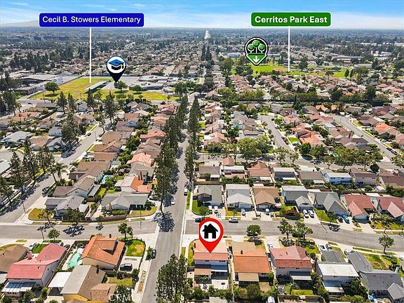 LOCATION,LOCATION,LOCATION!Nested on a peaceful cul-de-sac just steps from highly acclaimed Gonsalves Elementary, this well-loved home rests at the heart of one of Cerritos’ most sought-after neighborhoods. Stroll down quiet streets to find Stowers Elementary, Carmenita Middle, and inviting green spaces of Gonsalves Park and Cerritos Park East, all within easy reach- perfect for weekend picnics, playdates, and leisurely walks. Minutes away are the vibrant Cerritos Town Center, quick freeway 91 access, top rated Cerritos High and nationally awarded Whitney High-A prime real estate spot that checks every box, offering everything a family could wish for. Proudly standing on a desirable corner lot with only one side neighbor, this magnificent home exudes timeless pride of ownership and meticulous upgrades throughout. Step inside and feel the heart of the home unfolds- a bright, open living room where glorious natural light pours through generous windows, casting a cheerful glow on every gathering. This welcoming home showcases a unique layout with a spacious main-floor bedroom, plus four generous upstairs bedrooms-ready to grow, change, and hold your family’s stories for years to come. The kitchen, beautifully upgraded with elegant black pearl granite counters, a built-in breakfast bar, and ample rich dark cabinets, is the perfect place to gather, connect and share everyday moments. A fully permitted enclosed patio extends the upgraded kitchen, creating an ideal space for relaxing/entertaining-a seamless blend of indoor and outdoor living. Contemporary tiles seamlessly flow from the living room through the kitchen and baths, while gleaming laminate floors gracefully warm all bedrooms and stairsteps. Both bathrooms have been tastefully refreshed with sleek white Quartz vanities, ceiling high tile shower enclosures, cohesive rich dark undercounter cabinets and modern touches that add a fresh, stylish feel. The great backyard is ready for new memories, a shaded open patio cover, extensive paved patio areas, built-in planters for your favorite gardens, thriving passion fruit vines, and secure block wall fencing that wraps you in privacy. Newer central heat & A/C system, dual-pane windows & doors, durable tile roof, recessed lighting, and ceiling fan/lights throughout the home further highlight its style, efficiency and comfort.