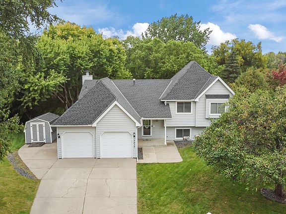 Sharp, move in ready, 4 Bedroom, 2 bath, Split Entry home available in an excellent North Lakeville Locale. This beautiful home offers a 2 car garage and sits on a nearly one-acre, picturesque, cul-de-sac lot featuring pond views and mature trees. Plenty of room for entertaining, adding a garden, etc. Recent updates include enameled cabinets, doors & trim. Slate tile + new LVP and carpet flooring throughout. 3 bedrooms on upper lvl, with a spacious walkthrough primary remodeled bath featuring a separate tub & shower. Enjoy, the spacious lower level with cozy brick fireplace and 2 separate entertainment spaces including a walk out to the large back yard. Finished laundry and utility room! Extended concrete driveway and storage shed included. Insulated garage! Newer roof! Perfect location, close to shopping, dining, top-rated ISD194 schools, parks, and so much more. THIS HOME IS A MUST SEE!!!