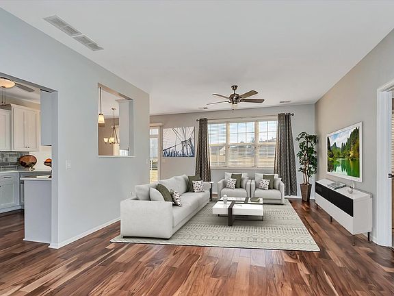 Some homes are just a place to live. Others are where life truly flourishes. This 2-bedroom, 2-bath ranch townhome in Lago Vista, an exclusive 55+ gated community in Lockport, is designed for the next chapter of your life, where comfort, convenience, and connection come first. Step inside and discover a home that's as functional as it is beautiful, thoughtfully refreshed to elevate everyday living. The renovated kitchen is a true centerpiece, featuring sleek quartz countertops, crisp white cabinetry with backlighting and stylish glass-front accents, a modern subway tile backsplash, newer appliances, and a pantry. The open layout flows seamlessly into the dining and living areas, creating a bright and inviting space perfect for hosting friends or enjoying a quiet evening in. The primary suite is a peaceful retreat with a spacious walk-in closet and an updated ensuite bath with dual vanities, linen closet, and a walk-in shower. The second bedroom is perfect for guests, a home office, or a cozy reading nook. Throughout the home, hardwood flooring, updated lighting, and fresh, neutral paint add to the bright and welcoming atmosphere. And the best part? Maintenance-free living means you can enjoy your home without the hassle of exterior upkeep. Lawn care, snow removal, and common area maintenance are all taken care of, so you can focus on what matters most. Beyond your front door, Lago Vista offers a resort-style lifestyle, tailored for those 55 and better. The 21,000 sq. ft. clubhouse is the social heart of the community, featuring an indoor and outdoor pool, fitness center, banquet room, craft and game rooms, a library, and more. The walking and biking trails, scenic ponds, and beautifully landscaped grounds invite you to stay active and enjoy the outdoors. Plus, with a gated entrance and on-site security, you can have complete peace of mind. Move in, settle down, and step into the best years made even better.