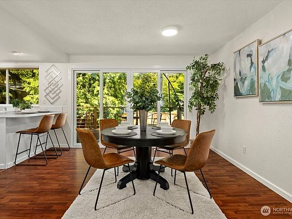 Nestled in Wilderness Rim, this rustic retreat is an outdoorsy escape from city life. Take in views of Rattlesnake Ledge and enjoy easy access to excellent nearby trails. A private yard and sprawling multi-level deck and patio invite gatherings and grilling, while double sliding doors open to gorgeous wood-laminate floors inside. The spacious layout features an open floorplan with three bedrooms upstairs and a generous basement warmed by a cozy pellet stove. A two-car garage includes a handy workshop, and the lower level offers flexibility for a potential MIL suite. Experience peaceful wilderness beauty, just moments from a charming town. 20 min to Snoqualmie Pass. 25 min to Bellevue. Pre-inspected.