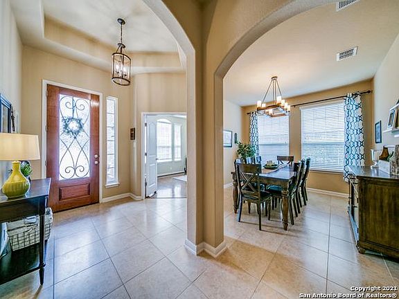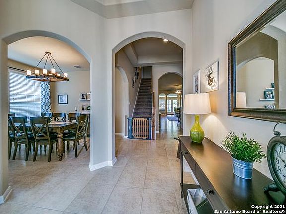 Amazing opportunity in this stunning 5 bedroom, 4 bath home with over 3,300 sq ft. In 2019 replaced entire roof. You'll find a spacious media room, large dining room, and a private study with beautiful wood floors. There's a gorgeous main floor master suite and bath featuring a walk-in shower and separate tub, complete with double vanity and walk-in closet. In the gourmet kitchen, there are granite counters, stainless steel appliances throughout, and a gas cooktop. All these amenities in the home and nestled on a coveted green belt lot in the highly desirable Triana subdivision! The backyard has a custom KidKraft playground set and an extra large 16 x 21 ft flagstone covered patio. Move-in ready and priced to sell! Come see your new home today.