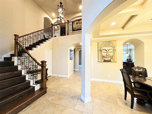 A stunning two-story home located in the Aliana master-planned community. Offering 4 bedrooms, 3.5 baths, this home blends elegance, comfort, and energy efficiency. Inside, the open layout features soaring ceilings, rich wood flooring, a media room, game room, and chef’s kitchen equipped with granite countertops and stainless-steel appliances. The luxurious primary suite boasts a spa-inspired bath and generous closet space, while secondary bedrooms are well-sized with walk-in closets. The home is equipped with solar panels and a Tesla battery backup, reducing energy costs and ensuring reliability.