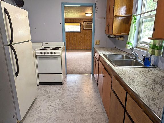 One level 2 BR home on nice corner lot. The oversized 2-car Garage and backyard Shed provide lots of storage. Recent updates include a new forced air natural gas furnace and new kitchen flooring. The family room has a wood burning fireplace and wall A/C unit. The price reflects the need for exterior updates. This would be a good rental property or affordable owner-occupied living.