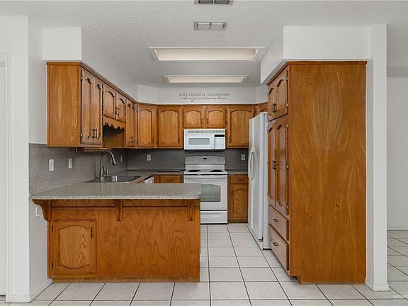Charming 3-Bedroom Home in Aladdin Villas 55+ Community! This beautifully maintained 3-bedroom, 2-bath brick home offers 1,483 sq. ft. of comfortable living space. Enjoy peace of mind with a new roof and well-kept A/C. The circular floor plan creates an easy flow, while the primary suite features three closets for ample storage. The kitchen includes a pantry, and custom-made drapes add elegance to the living and dining areas. A 2-car garage, lush grass, and a sprinkler system make this home stand out. Located in Aladdin Villas, a vibrant 55+ community, residents enjoy shared amenities such as a pool, spa, tennis/pickleball courts, shuffleboard, a woodworking shop, a stained glass studio, a library, and two halls with a ballroom, kitchen, and craft rooms. Don’t miss this opportunity—schedule your tour today!